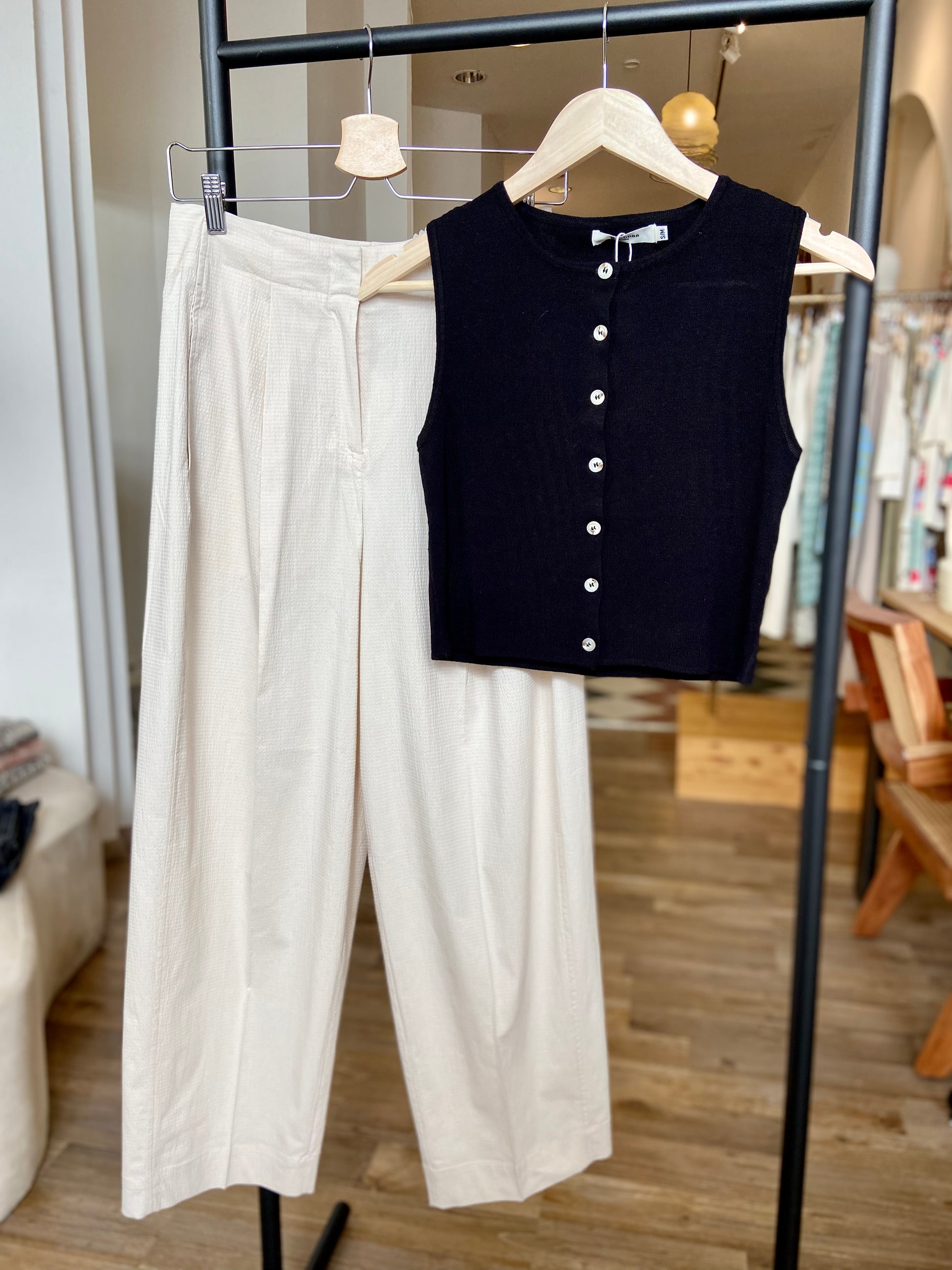 Das perfekte Sommer Basic. Weiches, feines Crop Top mit Knopfleiste in schwarz. Super angenehm auf der Haut