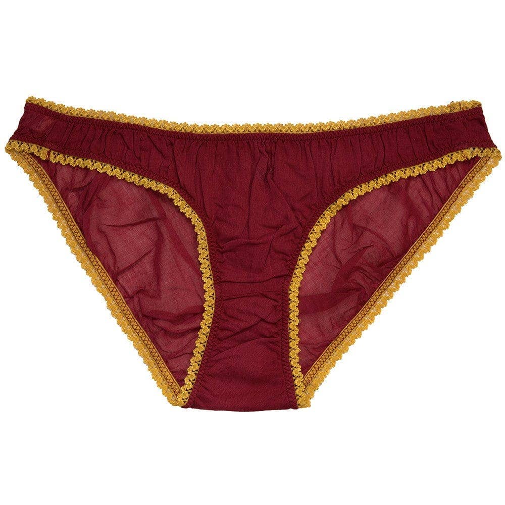 Weiches und bequemes Krockethöschen in Bordeaux mit senffarbener Spitze