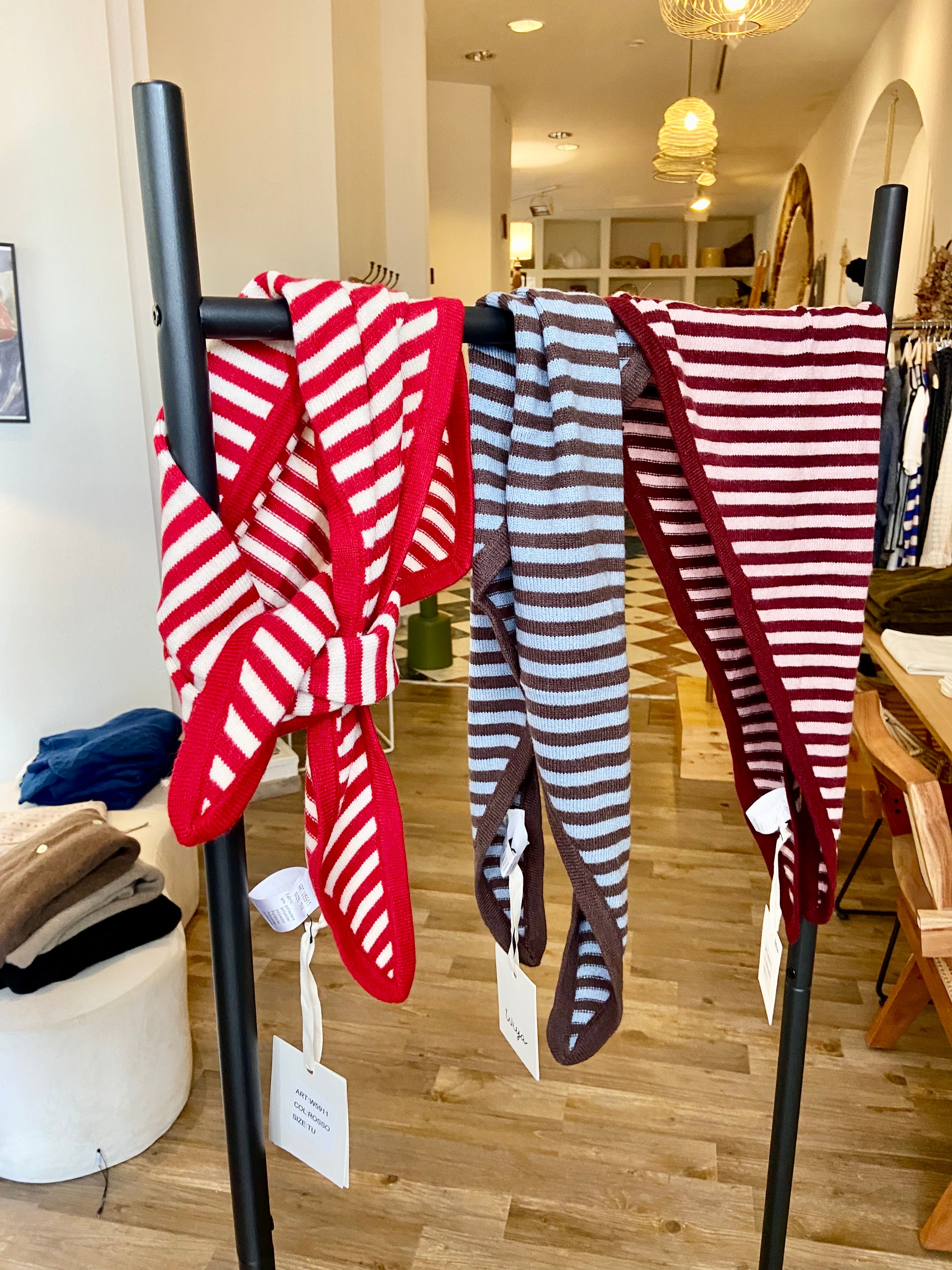 Super süßer Dreiecks Schal gestreift in Schokobraun und Himmelblau